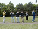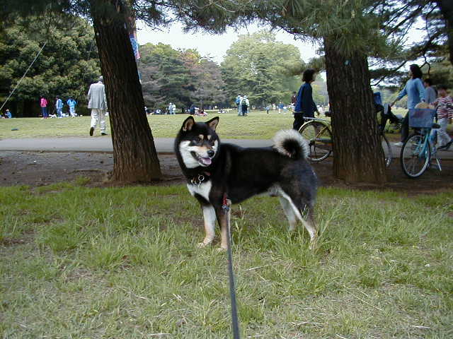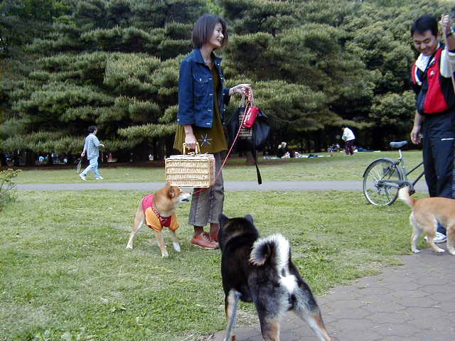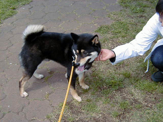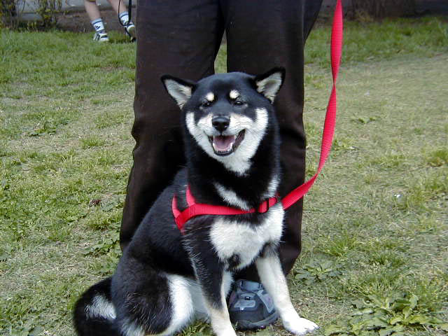 僕はもう興奮してしまった。ネエネの自転車に乗せられること30分。お天気に恵まれ黒柴大会に参加して来たのである。秋田犬ならいつでも勝負なのだが、実はまともに柴犬たちと鼻を付き合わせたことがない。なんだ僕とおなじようなワンコが勢ぞろいした。なんと夏夫君も例のTを着てご登場であった。ネエネなんか”なつお〜っ”などど遠くから呼んでいるではないか。はぁ。ネエネもテンション高いらしい。一番右はつぶらちゃんだ。僕よりもまだ小さい。それにしても「ボク」君にも会いたかった気がする。