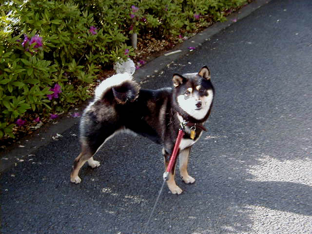 ネエネがとりあえずといって背中にタックを取りテープでとめてくれた。だがズボンの部分(後ろ足)がブカブカで心配であった。案の定途中で片方の足が抜けてしまった。お父さんに履かせてもらったが、ガサガサが気になって思うようにワン・ツーができなかったのである。ああ、僕はレインコートなしでもいい。ずぶぬれになってもいい。強い柴犬なのだ。