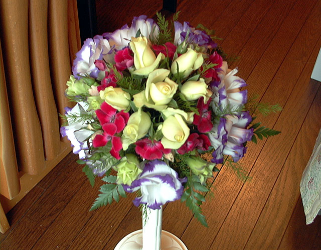 | No wires were used. Real colour is a bit different, more orange and less pink. Also called tied bouquet. | |