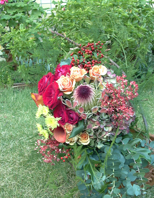Cresent style natural bouquet. Hydrangeas are rare item in Tokyo in Christams time. by Junko |