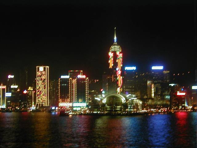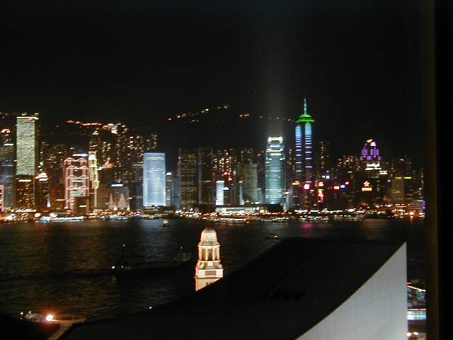 クリスマスイルミネーションに飾られた香港島の景色
