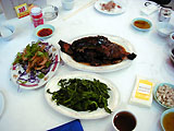保仔飯、土鍋の炊き込み御飯の種類が沢山。2人前でかなりの量。料理はしつこくなくフローラ好み。病み上がりにやさしかったです。 ファンは多いみたいです。鳩あり、サンラータンもありました。Dec2001 |