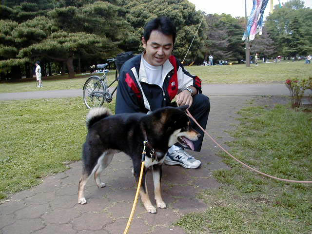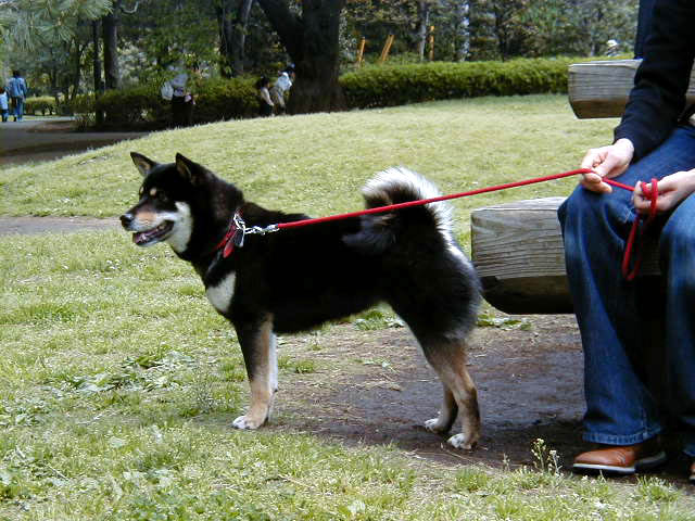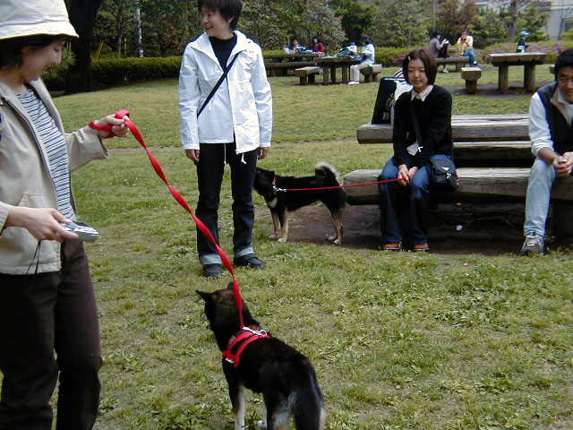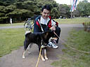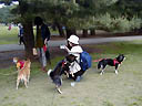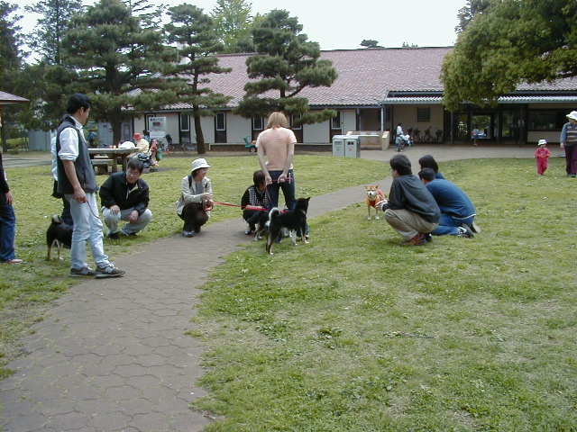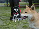 僕はもう興奮してしまった。ネエネの自転車に乗せられること30分。お天気に恵まれ黒柴大会に参加して来たのである。秋田犬ならいつでも勝負なのだが、実はまともに柴犬たちと鼻を付き合わせたことがない。なんだ僕とおなじようなワンコが勢ぞろいした。なんと夏夫君も例のTを着てご登場であった。ネエネなんか”なつお〜っ”などど遠くから呼んでいるではないか。はぁ。ネエネもテンション高いらしい。一番右はつぶらちゃんだ。僕よりもまだ小さい。それにしても「ボク」君にも会いたかった気がする。