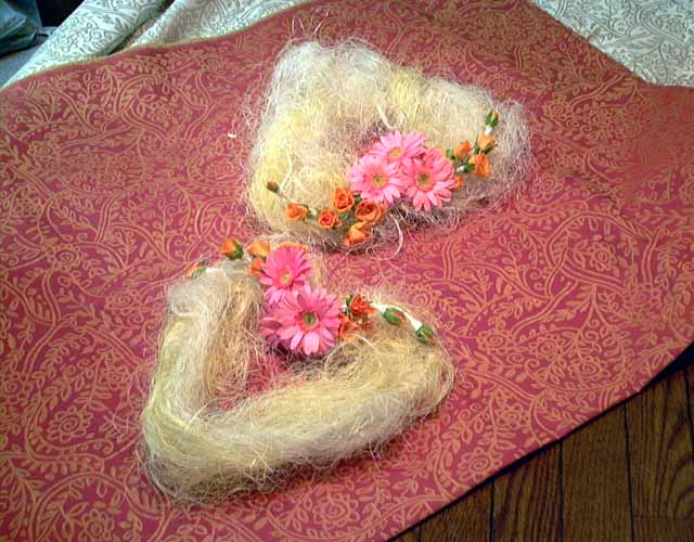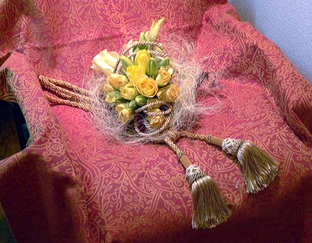 | ちょっと流行のシサル麻を使ってみた。 欧米では男性から女性へのバラの花が贈られるのだが、日本はなぜか女性からのアプローチ? |