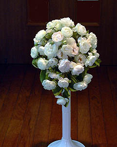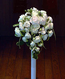 スプレーウイットのみを使ったティアドロップブーケ、葉はなるこラン、そしてアジアンタムをそっと花の間からのぞかせてます。 実にエレガントな作品です。 by Miyuki |