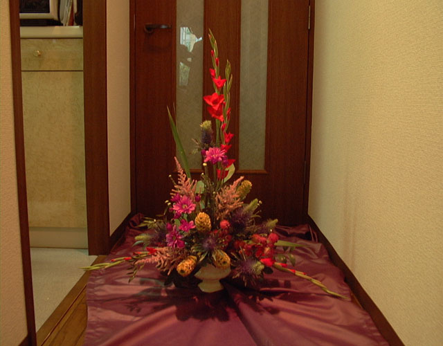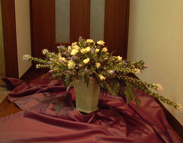 | すっきりとしたバスケットアレンジメントや格調高き英国式フラワーアレンジメントです。ディテールが独特です。拡大写真でよくご覧下さい。 今まで作ったことのないくらい可愛いウエディングブーケも力作。来月のウエディングセレモニーの練習ブーケです。 |